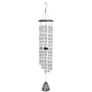 5" sonnet chimes have 5 heavy walled, center pinned tubes that emit deep tones. All aluminum construction, durable powder coated and anodized finish, and strung with industrial cord. Each chime has an adjustable striker. Tubes are 1.75" diameter, sentiment is printed directly onto the tubes.