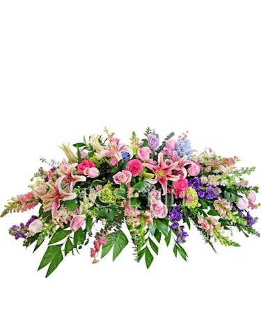 This casket spray is as fragrant as it is beautiful and will serve as a meaningful tribute to your loved one.