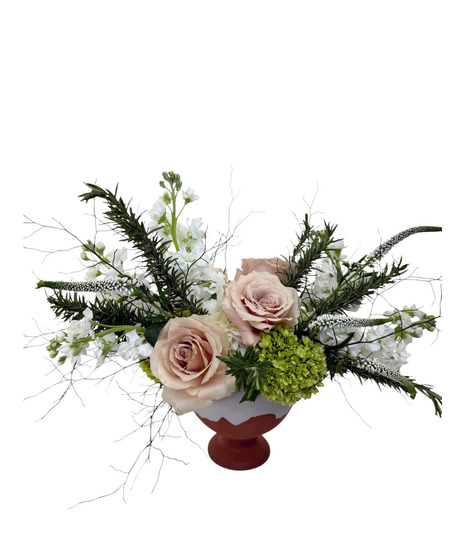 Presented in a modern ceramic compote with warm, earthy tones, this arrangement is both grounded and graceful. Perfect for winter celebrations, thoughtful gestures, or anyone who finds beauty in the still moments between seasons.