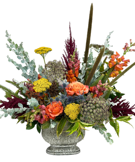 Designed as a show-stopping centerpiece, "Harvest Luxe" brings a touch of autumnal grandeur to any space, perfect for those who appreciate the beauty of high-end floral artistry.
