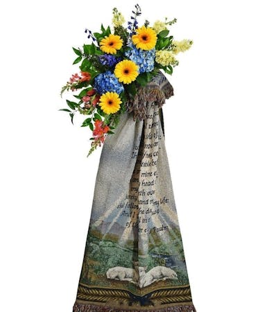 The "Stars & Stripes" woven throw from Rose Hill Flowers is an emblem of American pride and craftsmanship. Draped regally on an easel, it presents the familiar and stirring image of the American Flag, the red and white stripes boldly sweeping down, interspersed with the tranquil field of blue adorned with white stars. Each thread in this throw tells a story of heritage and unity, with the tactile nature of the weave adding a comforting, touchable quality to a symbol often held at a respectful distance. The design captures the flag's essence, transforming it into something both celebratory and soothing, a piece of functional art. Whether used as a display during national holidays, a respectful tribute, or as a cozy blanket to wrap around oneself during cooler evenings, this throw is versatile and meaningful. The fringed edges offer a rustic, handcrafted feel, while the vibrancy of the colors invites a sense of warmth and welcome.