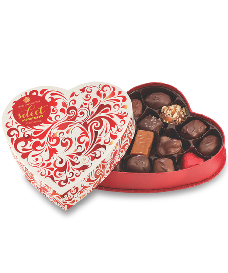 A little box with a whole lot of heart. Sweet Bite of Mine features 5.5 ounces of handcrafted chocolates from Abdallah, elegantly wrapped in a red swirl design that’s as charming as it is gift-ready. Inside, you’ll find a decadent mix of caramels, velvety creams, and rich truffles—each bite a sweet harmony of milk and dark chocolate.
